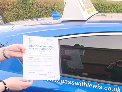 Nicola Jamieson 1st Time Pass Brilliant instructor, would highly recommend!! Did a 20hr block over 4 weeks and passed first-time! Lewis asked lots of questions throughout that consolidated my understanding! Thanks again!